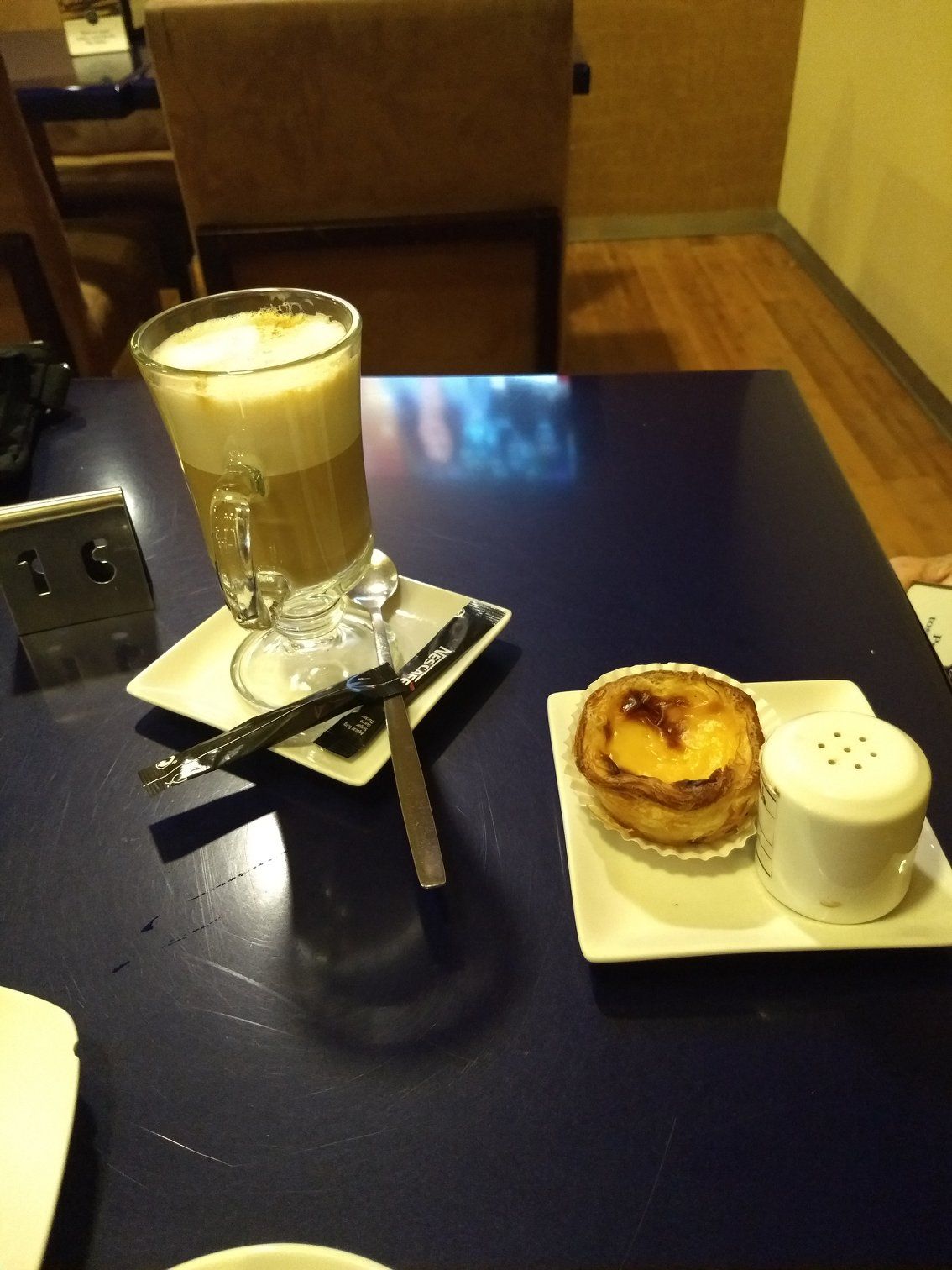 | A cafe com leite and a pastel de nata |