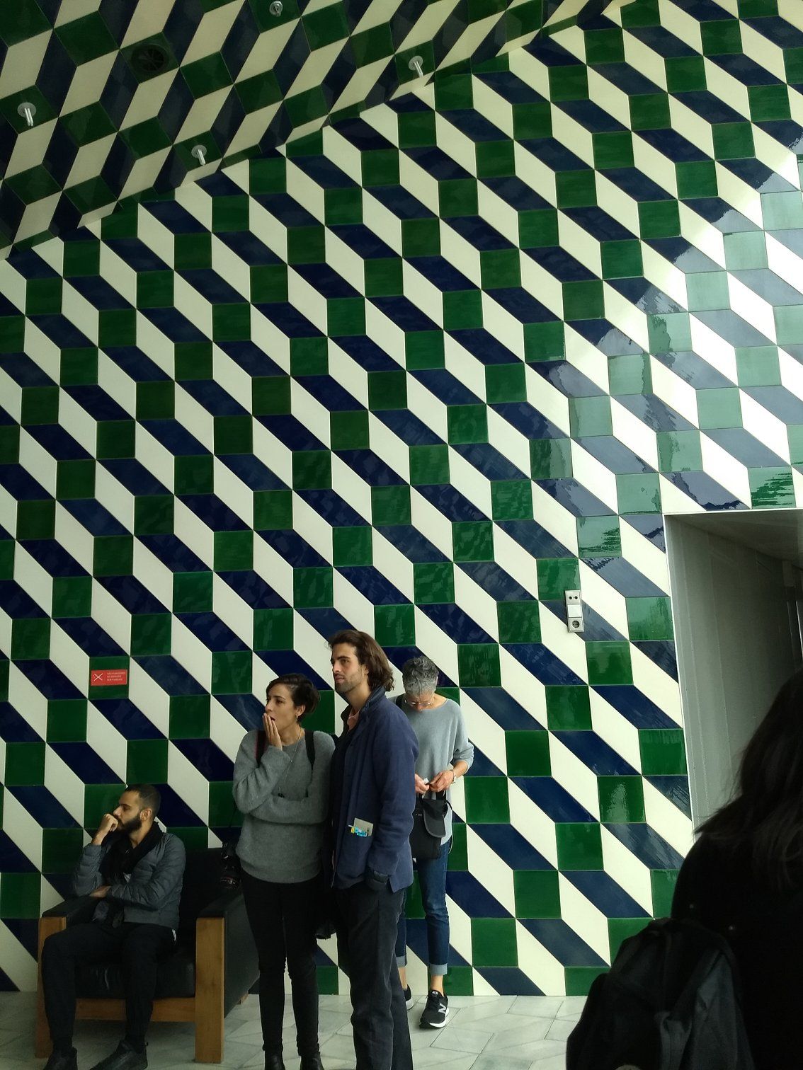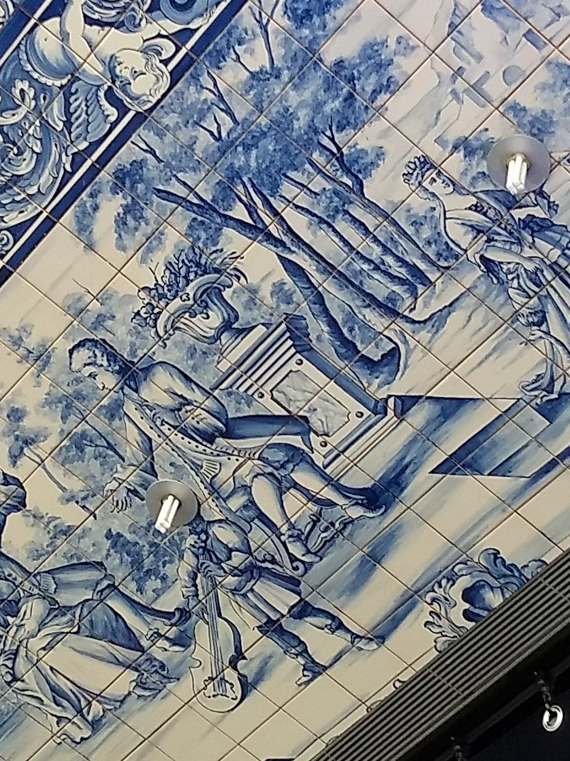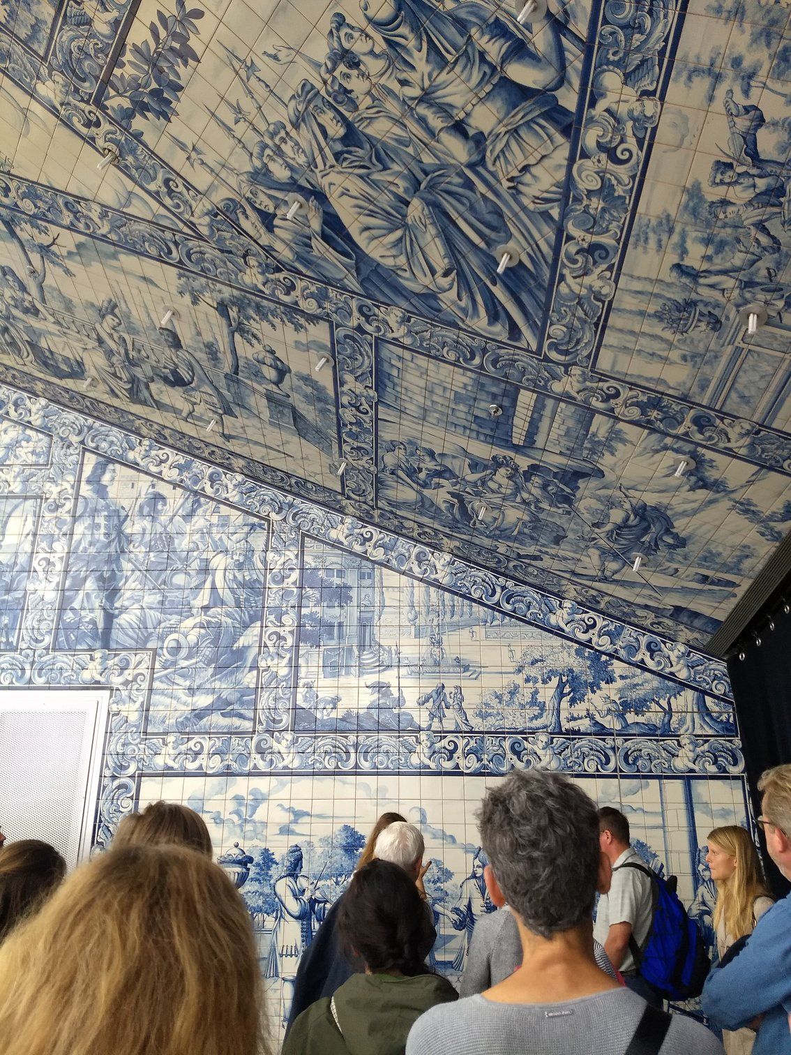 | A door incorporated into the room tiled with traditional Portugese murals |