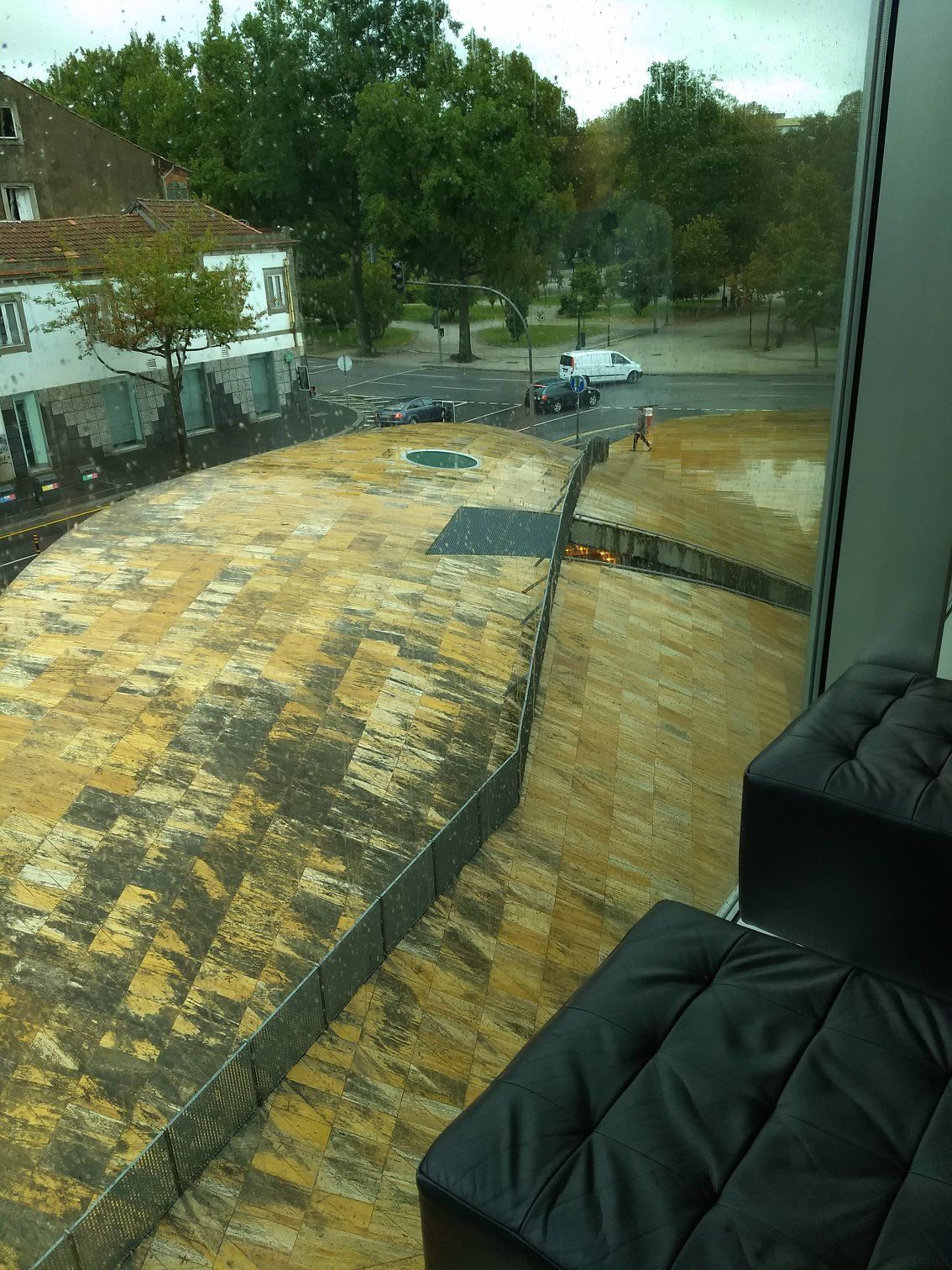 | The view of the plaza from the second story windows. The Casa da Musica is quite a contrast from other buildings in the neighborhood. |