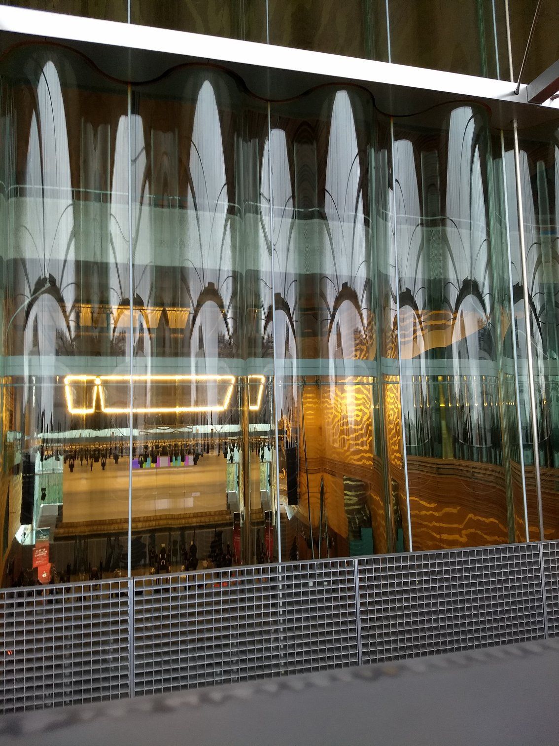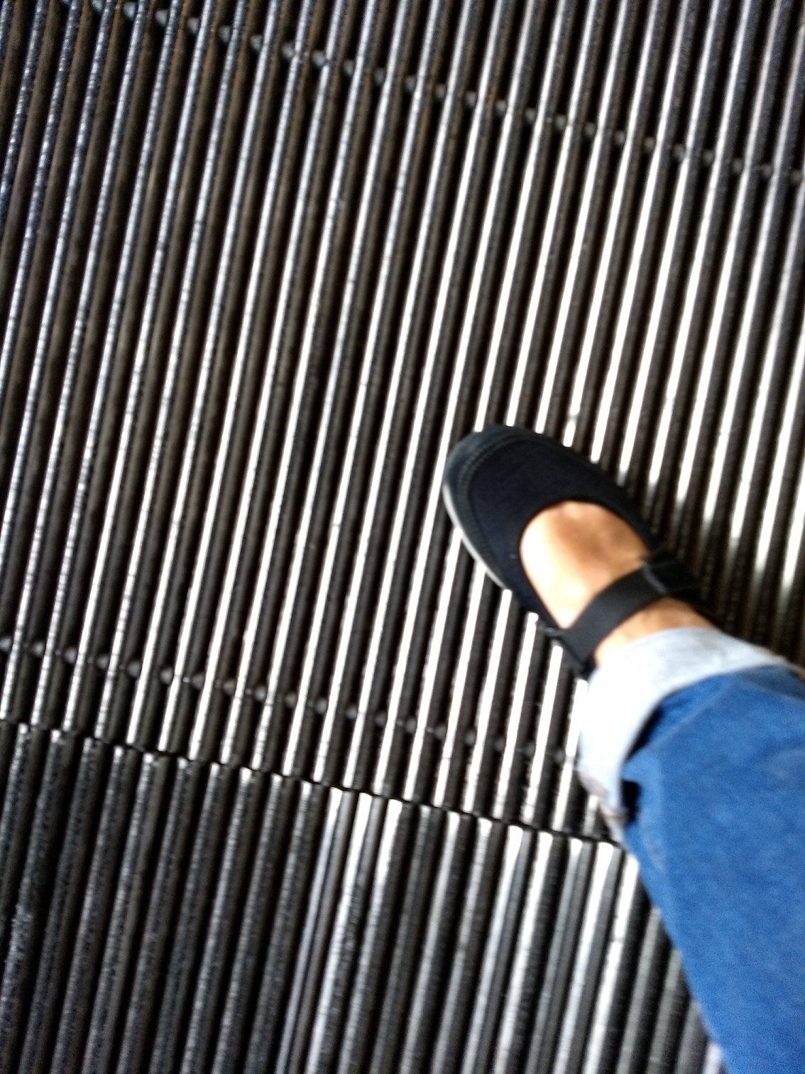 | Even the flooring was very unique. The strips of metal seemed to move a little as we walked on it, maybe to collect the dirt or water that visitors tracked in. |