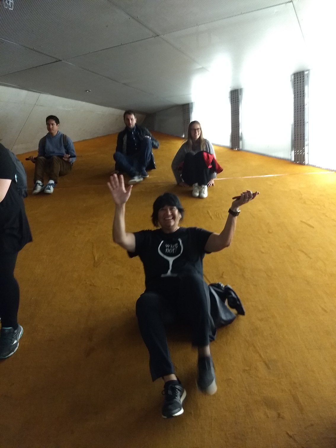 | Nancy just couldn't resist the sloping floor |