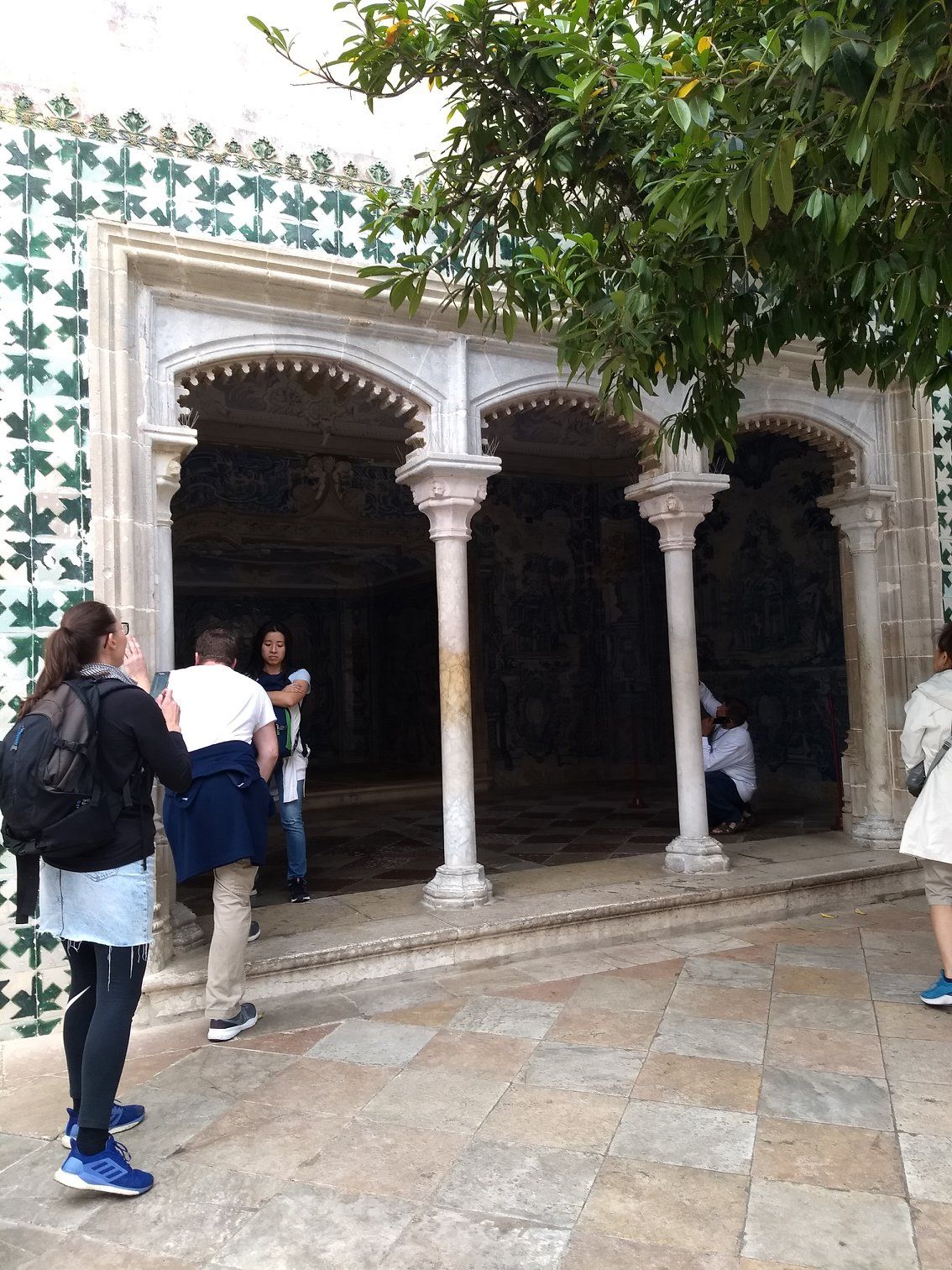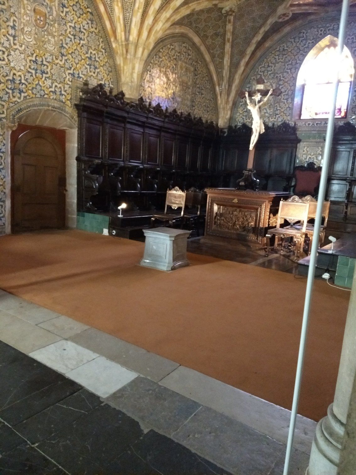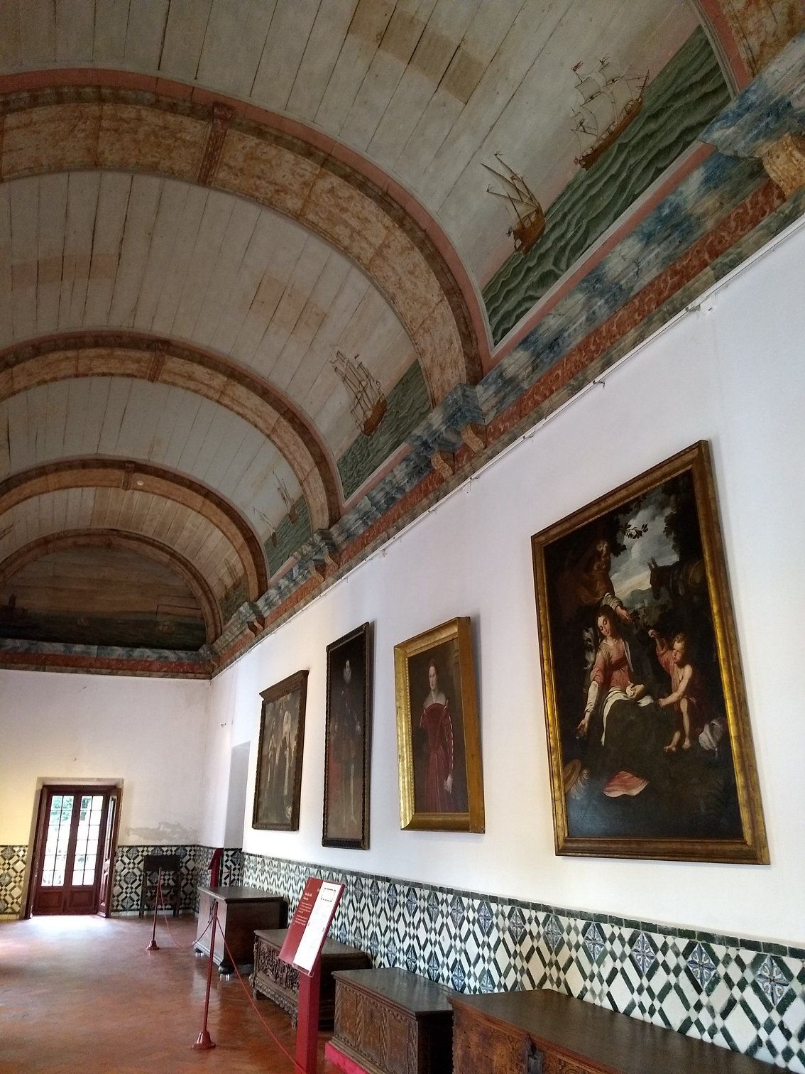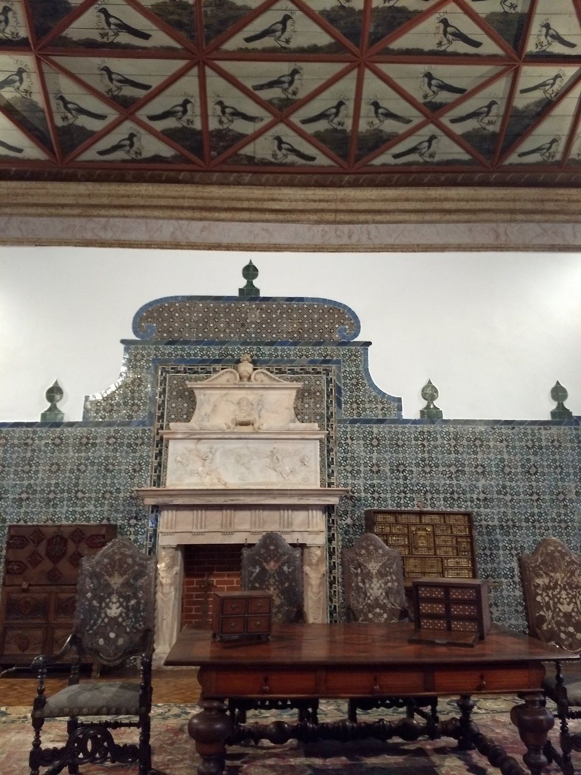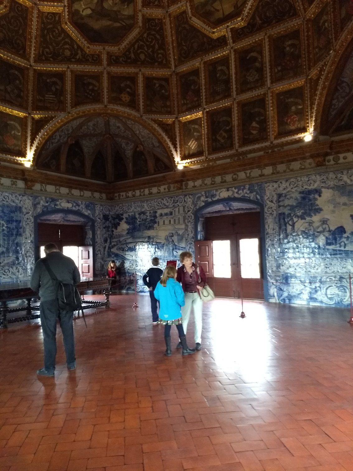 When we arrived back in our part of town, we still had enough time to visit the National Palace, and by this time there was no line. It was beautiful and ornate, and we were glad we’d seen it. This palace was built in he 15th century, during the reign of King Joao I, and is the oldest surviving royal palace in Portugal. It housed royalty for 500 years, until 1910, and is still used for official receptions. We're used to the elaborate tile work we've seen all over Portugal by now, but the beautifully painted ceilings are a stand-out of this palace.