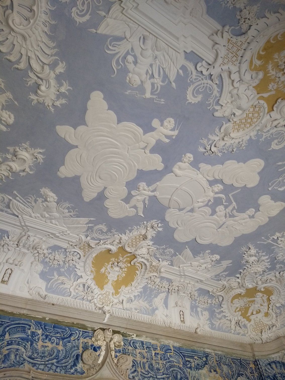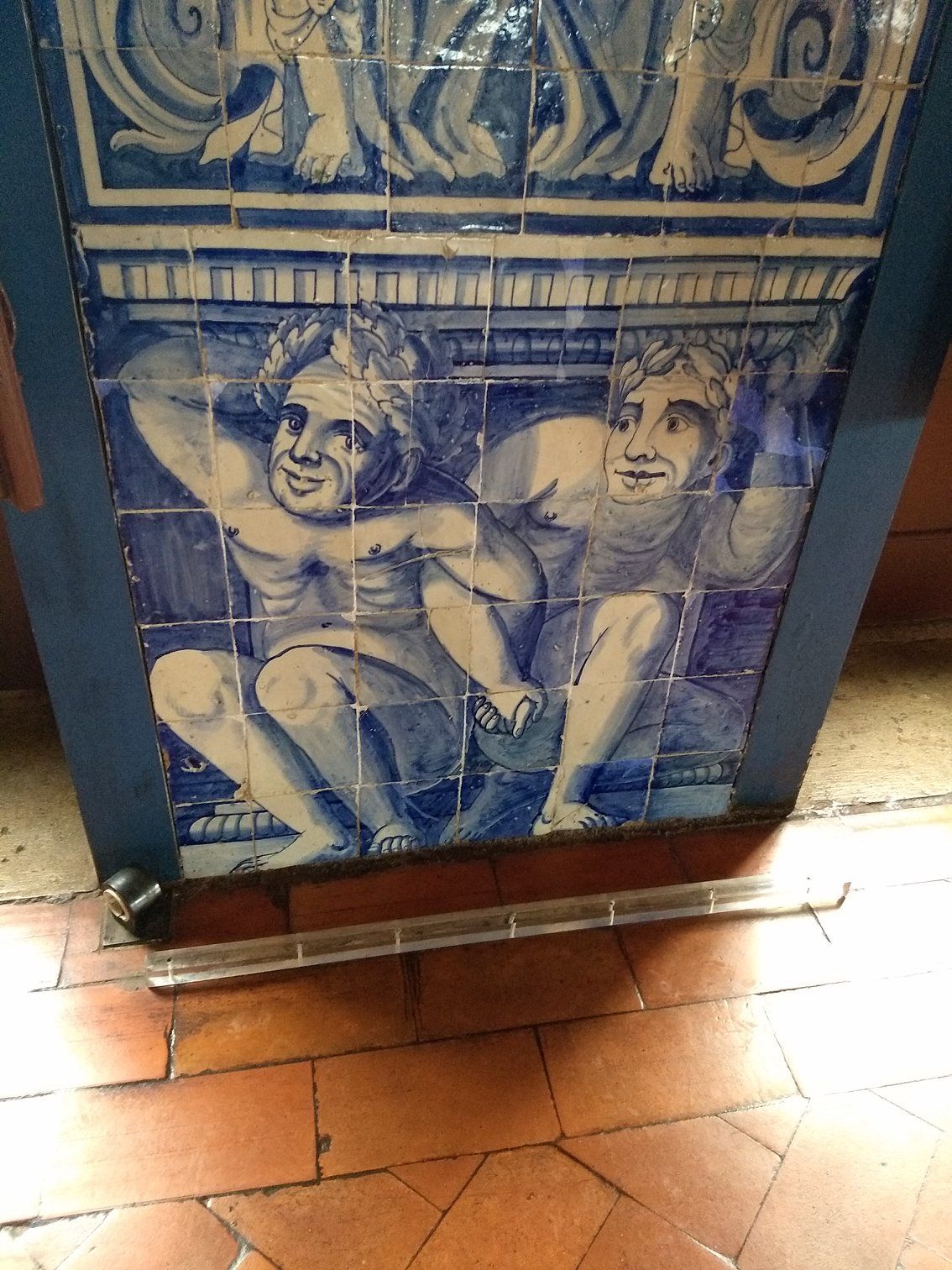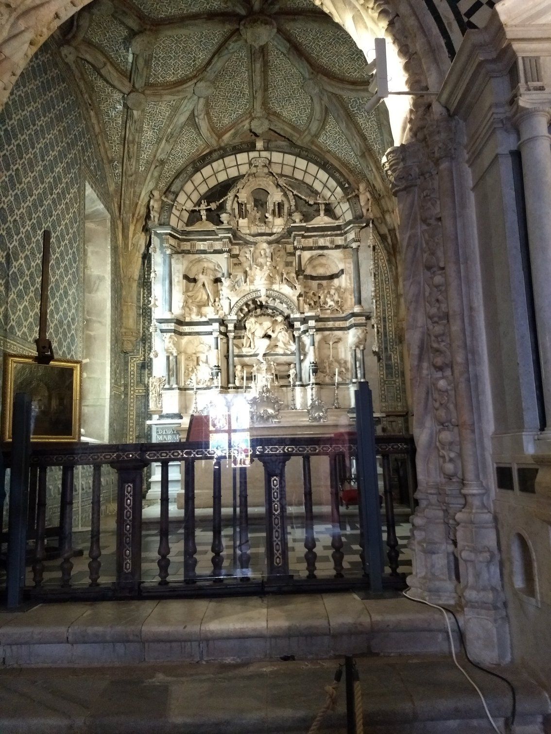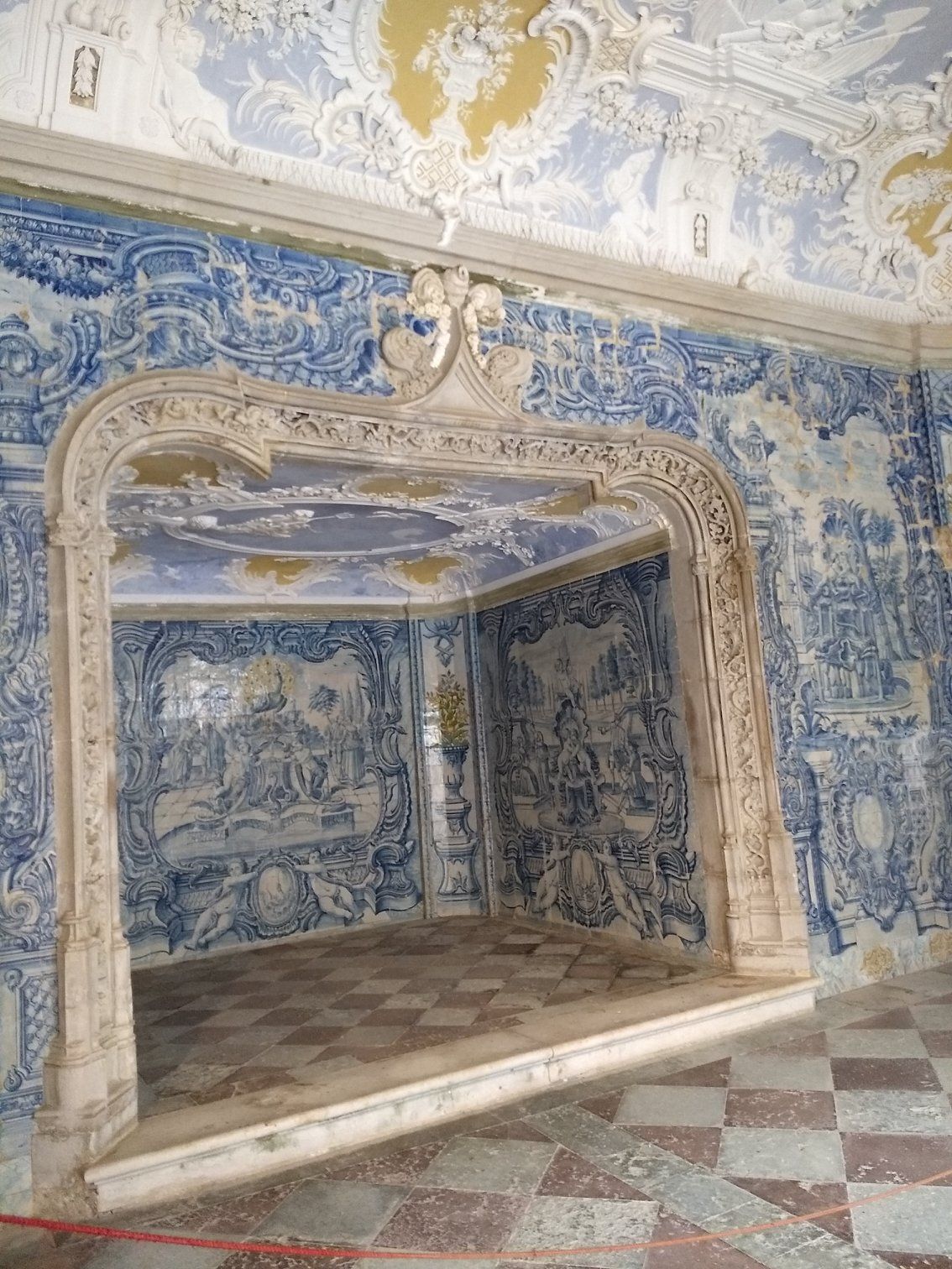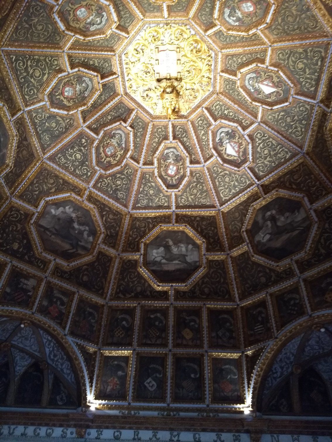 When we arrived back in our part of town, we still had enough time to visit the National Palace, and by this time there was no line. It was beautiful and ornate, and we were glad we’d seen it. This palace was built in he 15th century, during the reign of King Joao I, and is the oldest surviving royal palace in Portugal. It housed royalty for 500 years, until 1910, and is still used for official receptions. We're used to the elaborate tile work we've seen all over Portugal by now, but the beautifully painted ceilings are a stand-out of this palace.