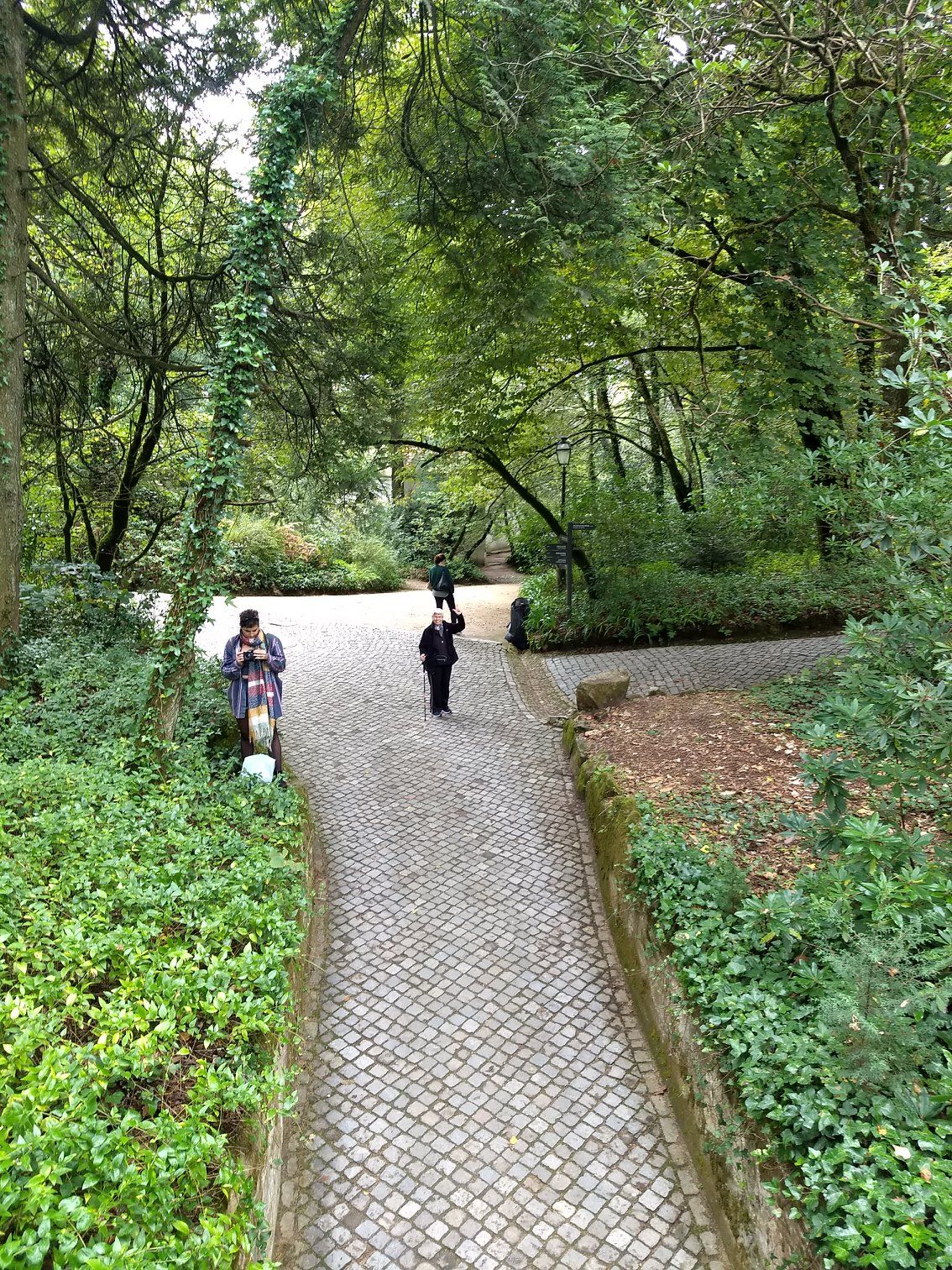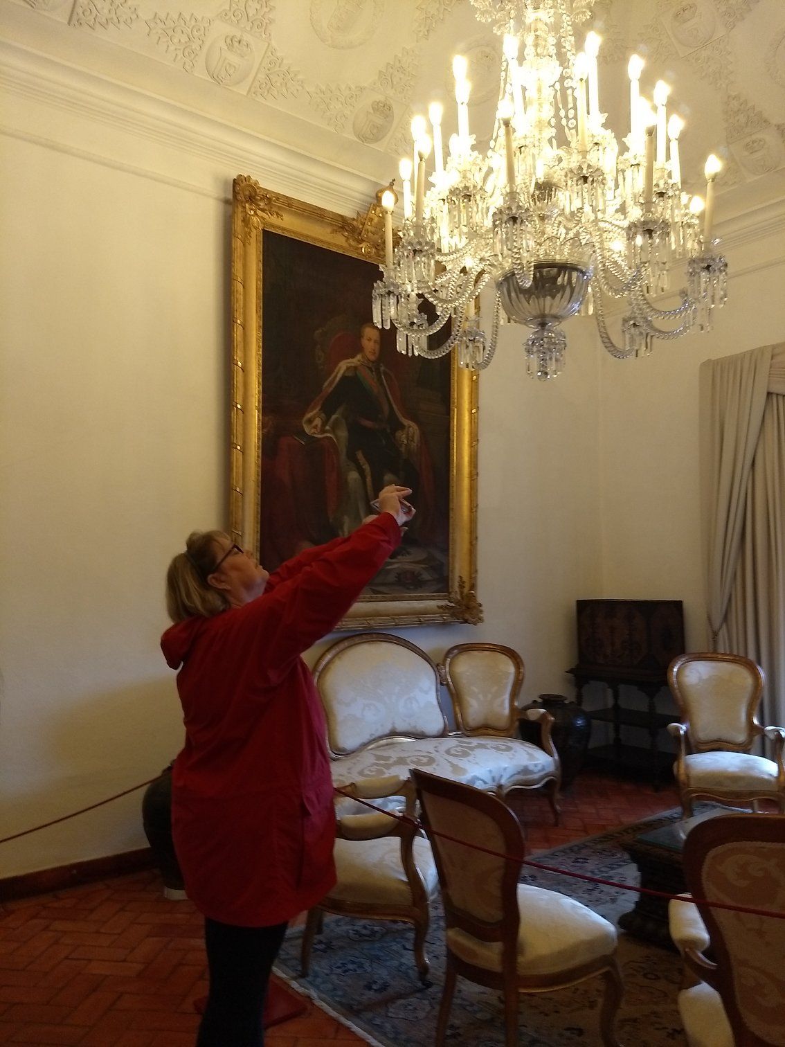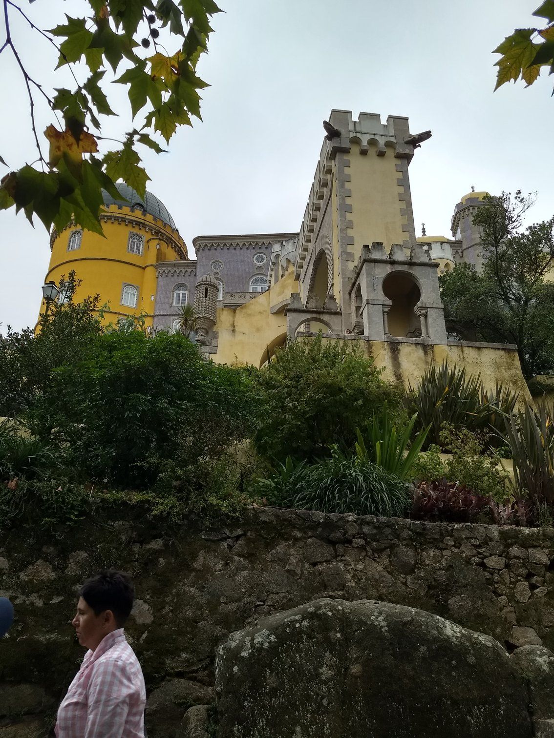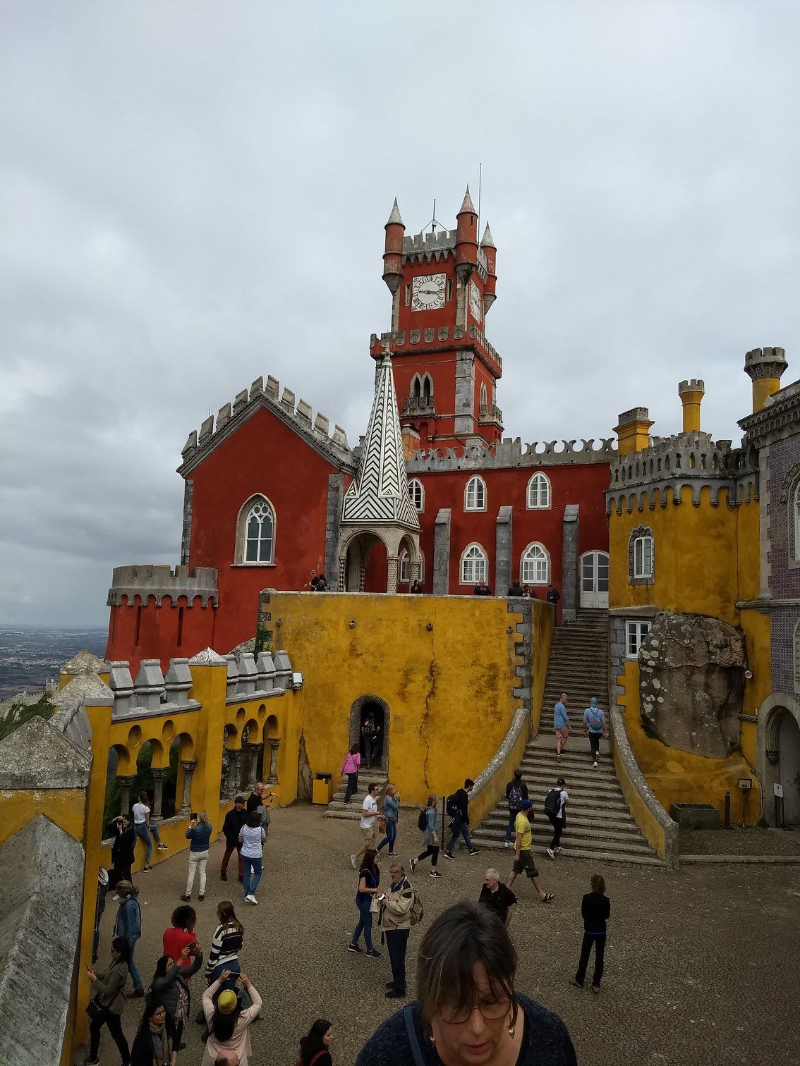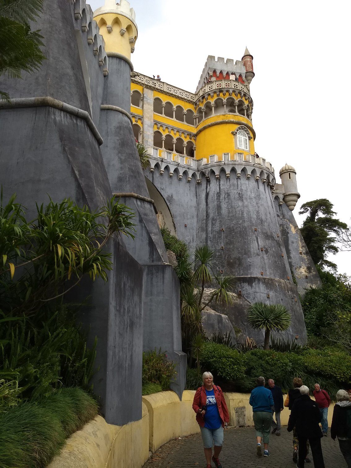 Once we were all showered and dressed, we thought we'd visit the National Palace in the center of town, not far from us. There was a big line waiting to get in, so we decided to take the bus up to Pena Palace instead. We later wondered at the wisdom of this, after waiting in long lines each step of the way, getting tickets and getting into the palace. Gail and I ended up being the only 2 of our group to tour the palace, after Gail saw other people jumping the queue, and decided we'd better do that too, if we wanted to see this place! As horrified as I was, she nonetheless coaxed me into doing the same.