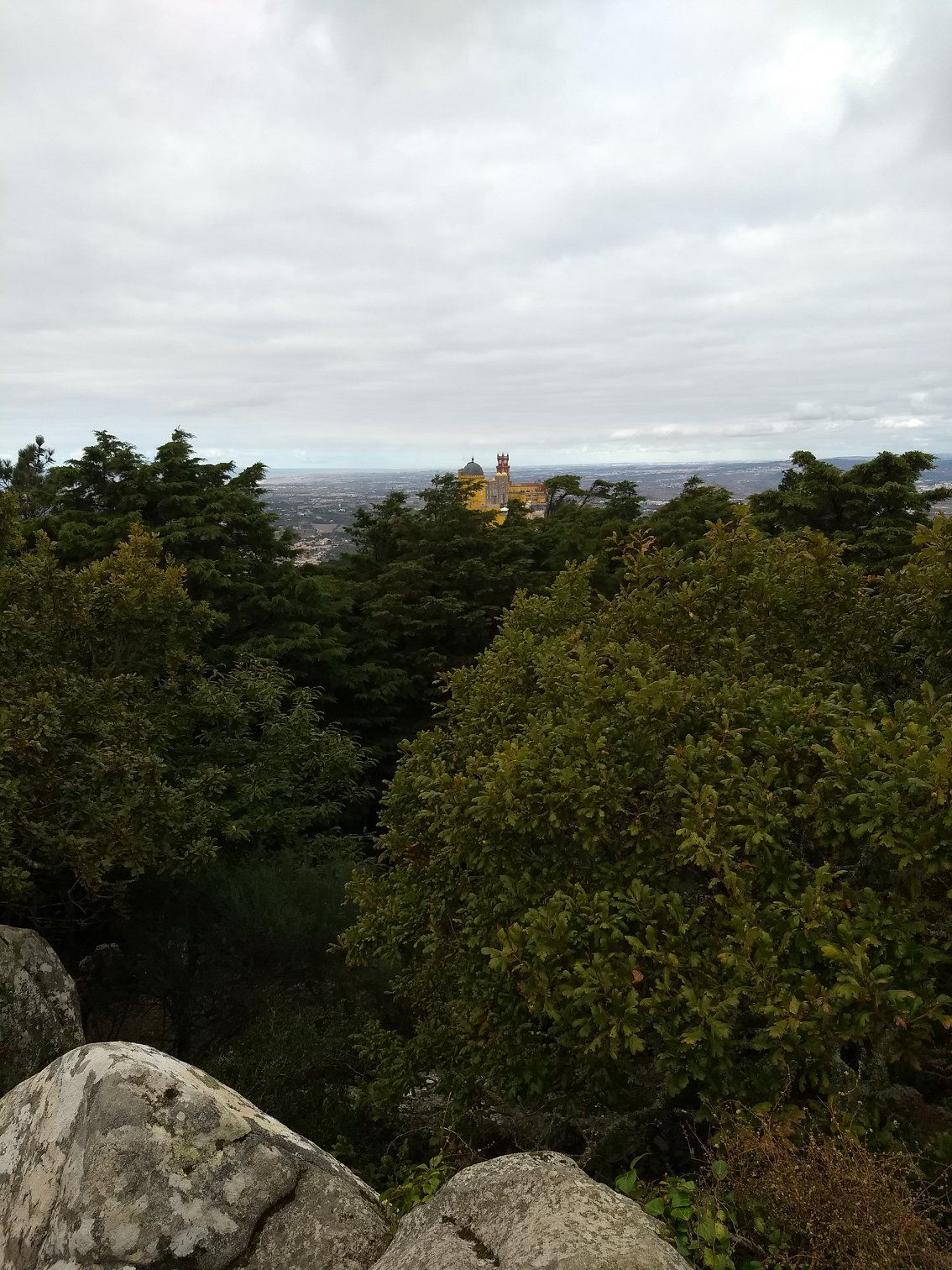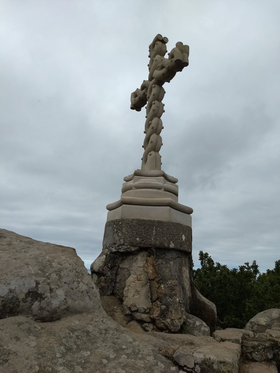 We met the rest of the group for a good lunch in the cafe there, and headed back down to catch the bus back into town. Of course, by then, the lines entering the palace were gone. On the way back down, Nancy and I hiked up to the cross in the park surrounding the palace to see the view from up there.