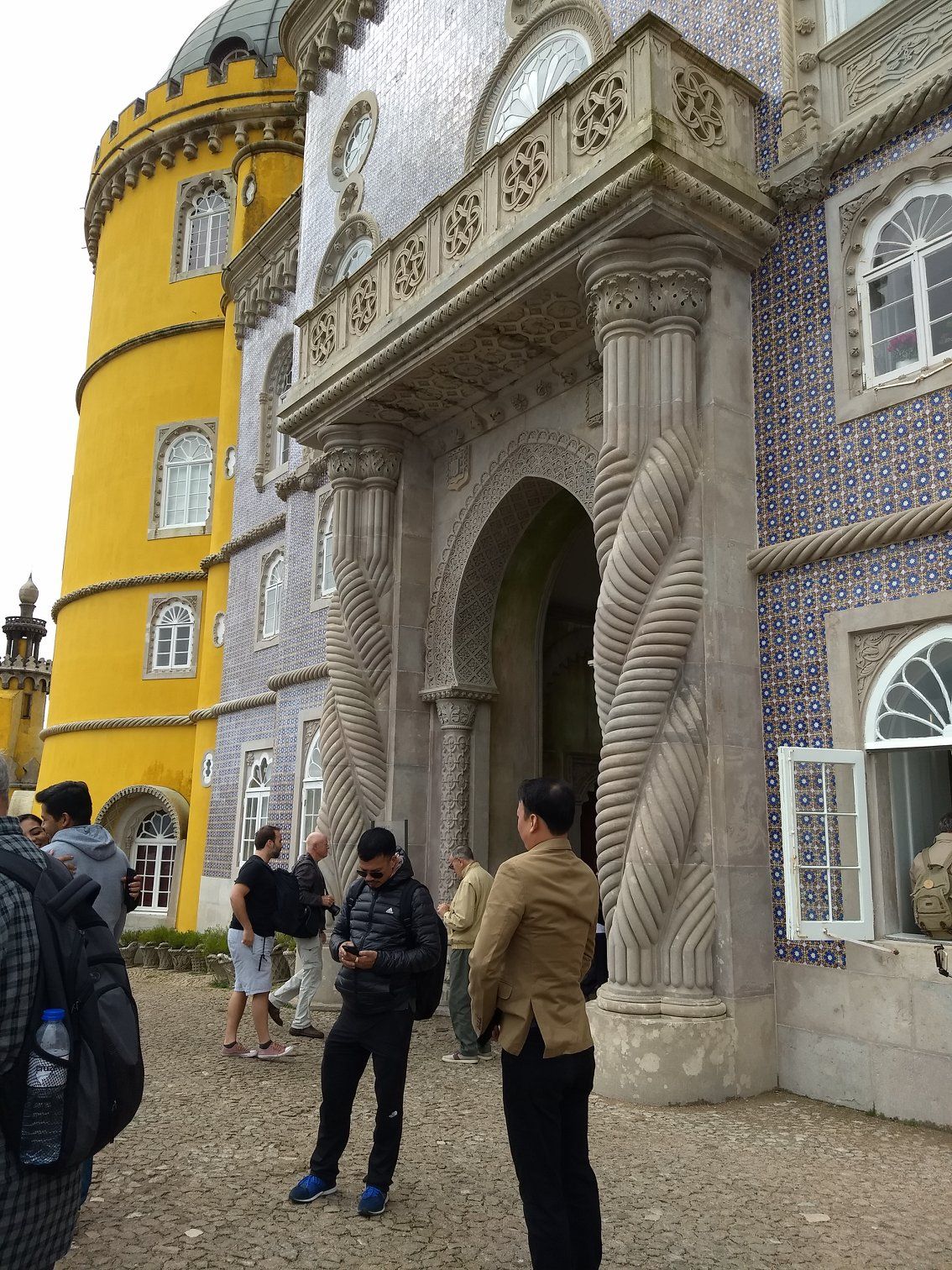 Pena Palace was built for Prince Ferdinand in the 19th century. Ferdinand was German-born, and a cousin of Mad King Ludwig. Ferdinand hired a German architect to design a fantasy castle, and he got what he wanted. It's over-the-top ornate, and a mishmash of different styles.