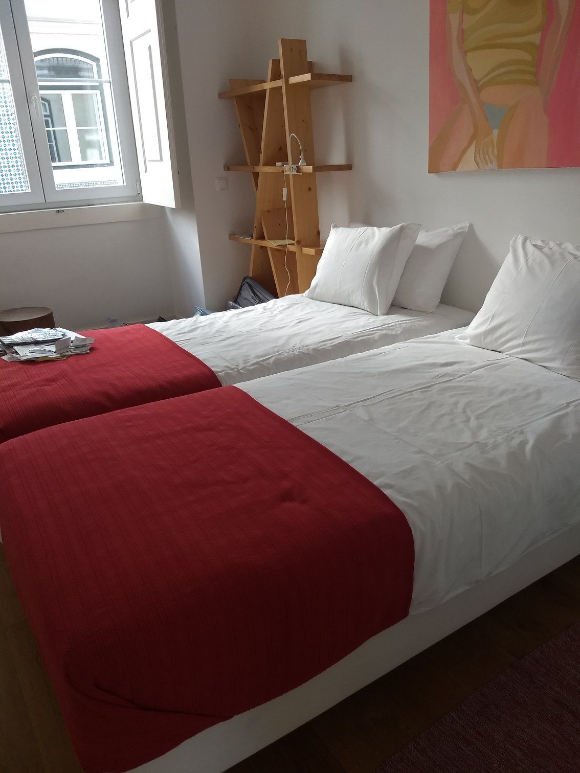 She finally let us in, and showed us around our beautiful apartment Sao Mamede 29. It had 3 bedrooms, 3 bathrooms, a lovely dining room and living room that would seat us all, and a nice, modern kitchen. The living room had a wall of windows, which made it very bright and cheerful, and there was a deck off of the living/dining room looking out to the surrounding area. Plus, it was an easy walk to downtown.