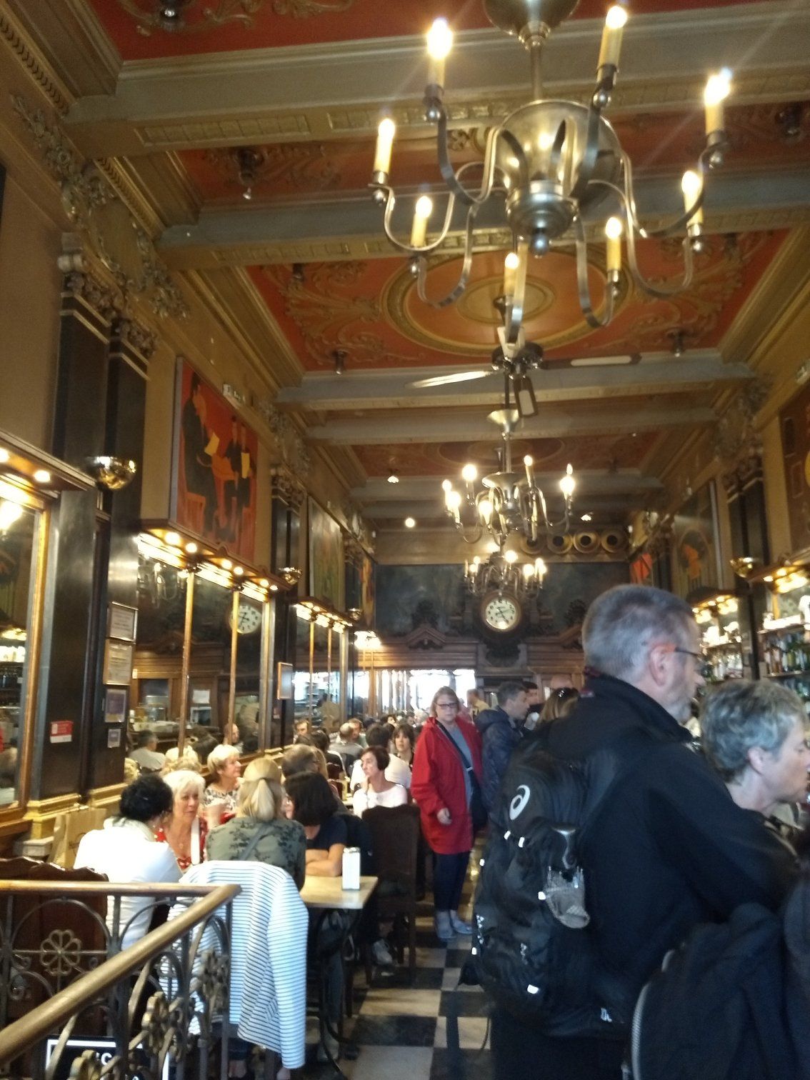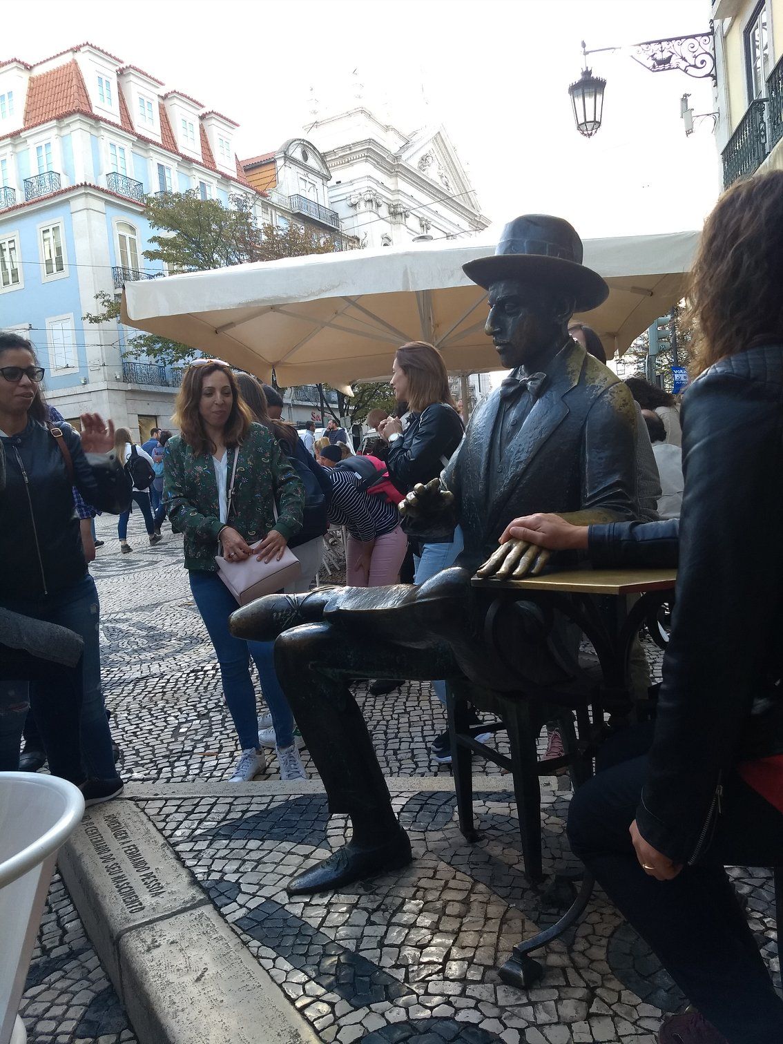 We finally found it. It's been there for 100 years, and decorated in an elegant art nouveau style. We stopped to have a coffee and sat outside on their covered patio and watched the people in the bustling square, some taking pictures with the statue of poet Fernando Pessoa.